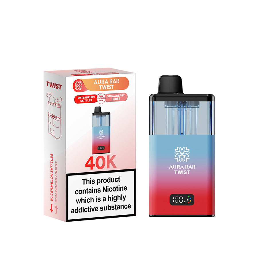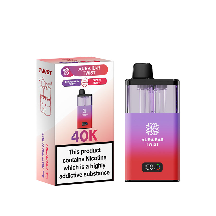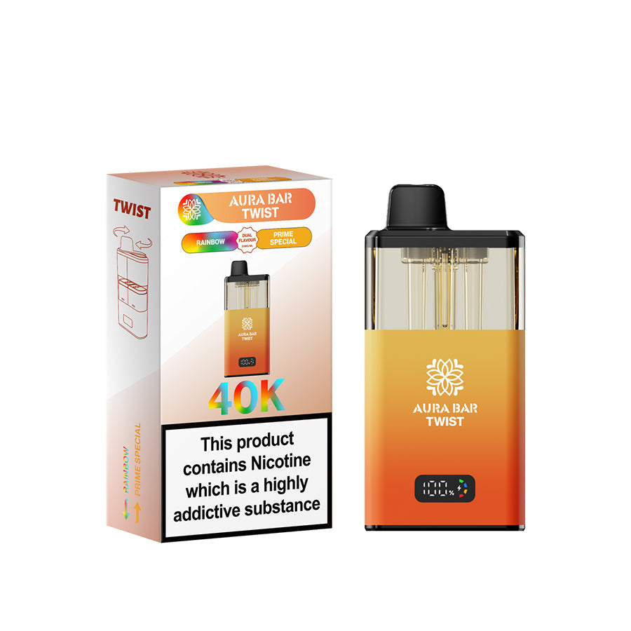 Introducing the Crystal Prime Twist Aura Bar, the next evolution in vaping, designed for those who seek innovation, extended power, and exceptional flavor. From the creators of the widely acclaimed Crystal Prime 7000 and Crystal Prime Deluxe 18K, this device delivers an astounding 40,000 puffs, making it one of the most sophisticated and longest-lasting disposable vapes available.