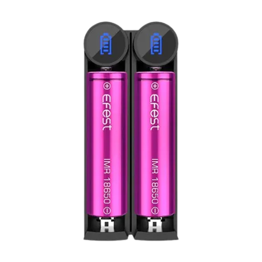 The EFest Slim K2 Charger boasts twin bays and a micro-USB connection for powering up cells. It incorporates dual LED indicators to show the charging progress, with each bay monitored independently to ensure the best possible charge. Furthermore, this charging unit is fitted with protective measures like defense against reversed polarity, short-circuit safeguarding, and prevention of overcharging. The EFest Slim K2 Charger is constructed to replenish diverse 3.6V/3.7V lithium cells frequently utilized in electronic cigarettes.