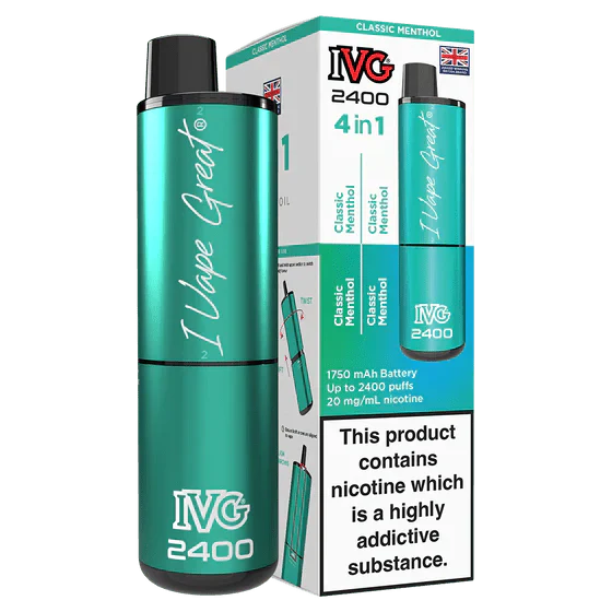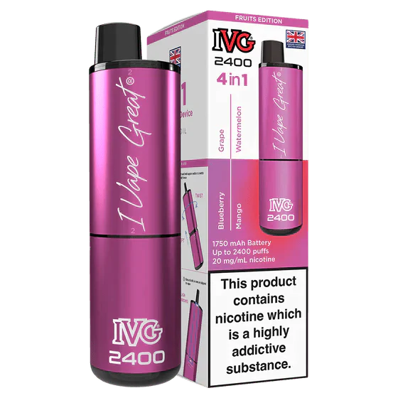 The IVG 2400 Rechargeable Vape Kit is a smart and budget friendly option for vapers who want strong performance, rich flavour, and convenience in one compact device. Known for their premium flavour quality, IVG has designed the 2400 kit with an innovative 4 in 1 pod system, allowing you to enjoy four different flavours in a single device. This makes it ideal for flavour lovers who like variety without carrying multiple vapes.