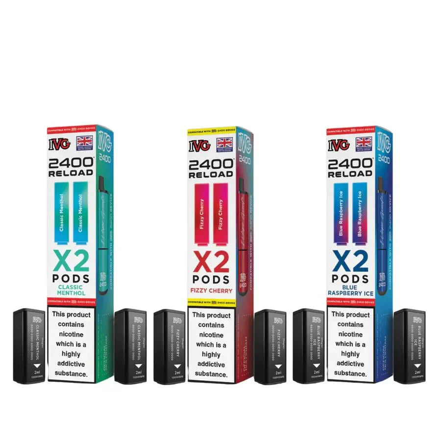 The IVG 2400 Reload 2-in-1 Prefilled Pods are available in a wide range of popular IVG flavour profiles. Flavour availability may vary.
