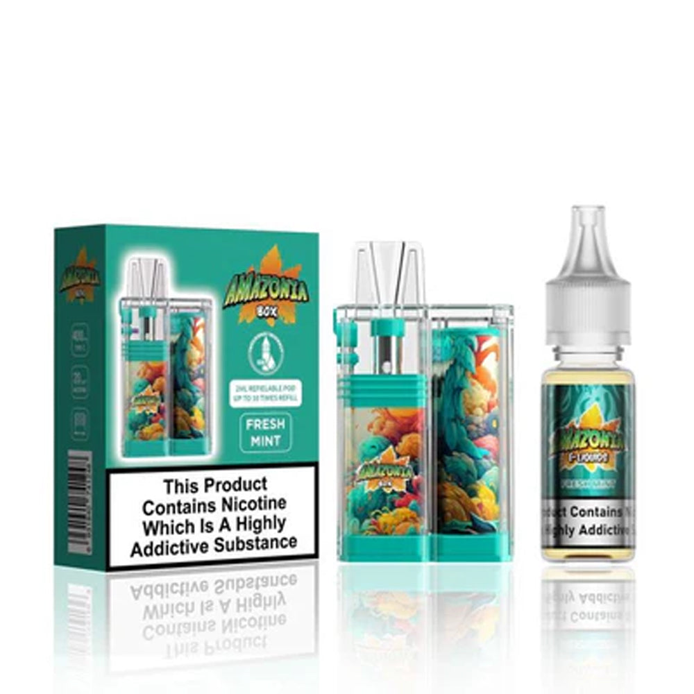 The Amazonia Box is a vaping device that comes with a 10ml bottle of Amazonia Nic Salt Liquid, which is used to replenish the device. This makes it a great choice for all vapers. The device is powered by a robust 400 mAh battery that can last all day and is easily rechargeable. Enjoy a high-end and personalized vaping experience with this sleek and compact gadget. Its refillable pods and long-lasting battery allow you to vape your preferred e-liquids anytime, anywhere. Join the vaping trend with Amazonia.