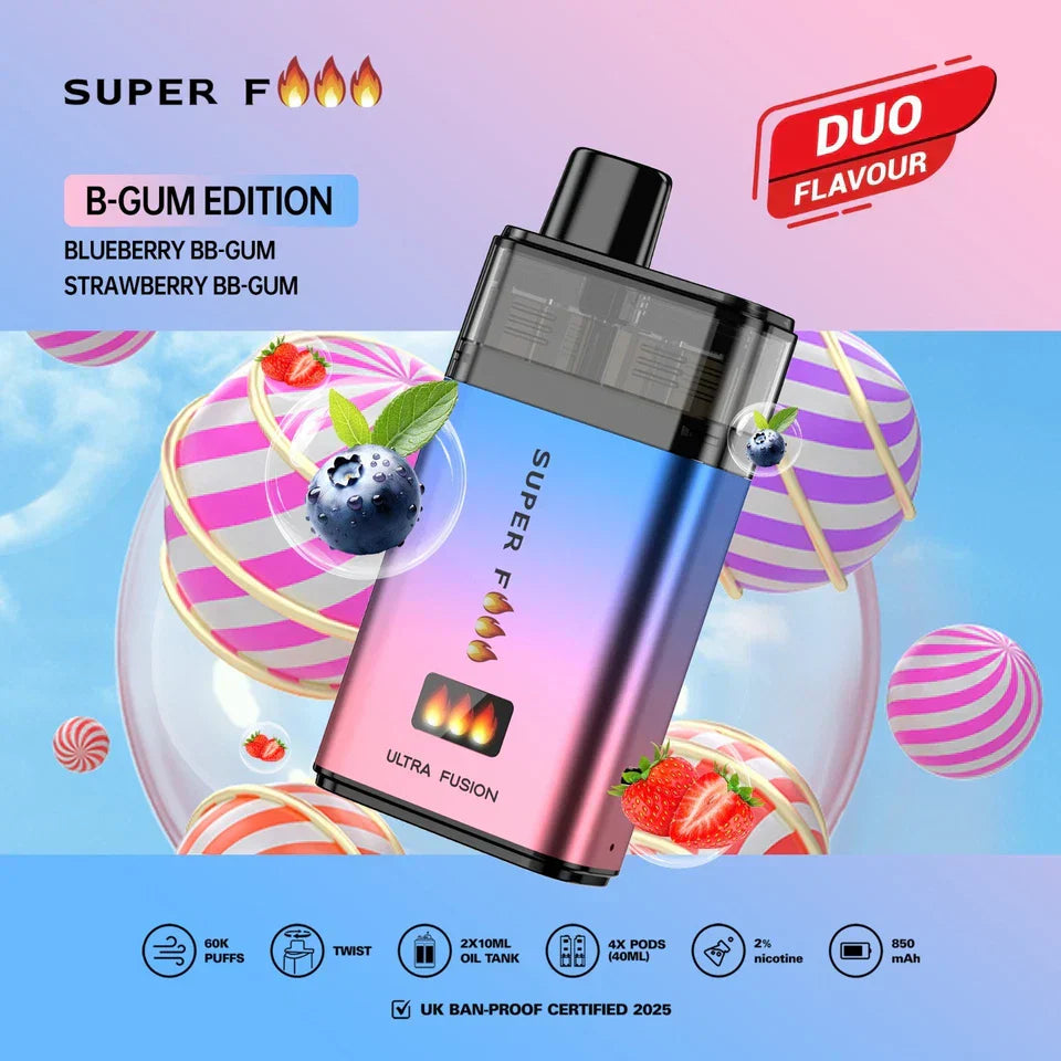 The Superfire Ultra Fusion 60K delivers up to 60,000 puffs, offering exceptional longevity and value. Perfect for those who want continuous use without the need for frequent replacements.